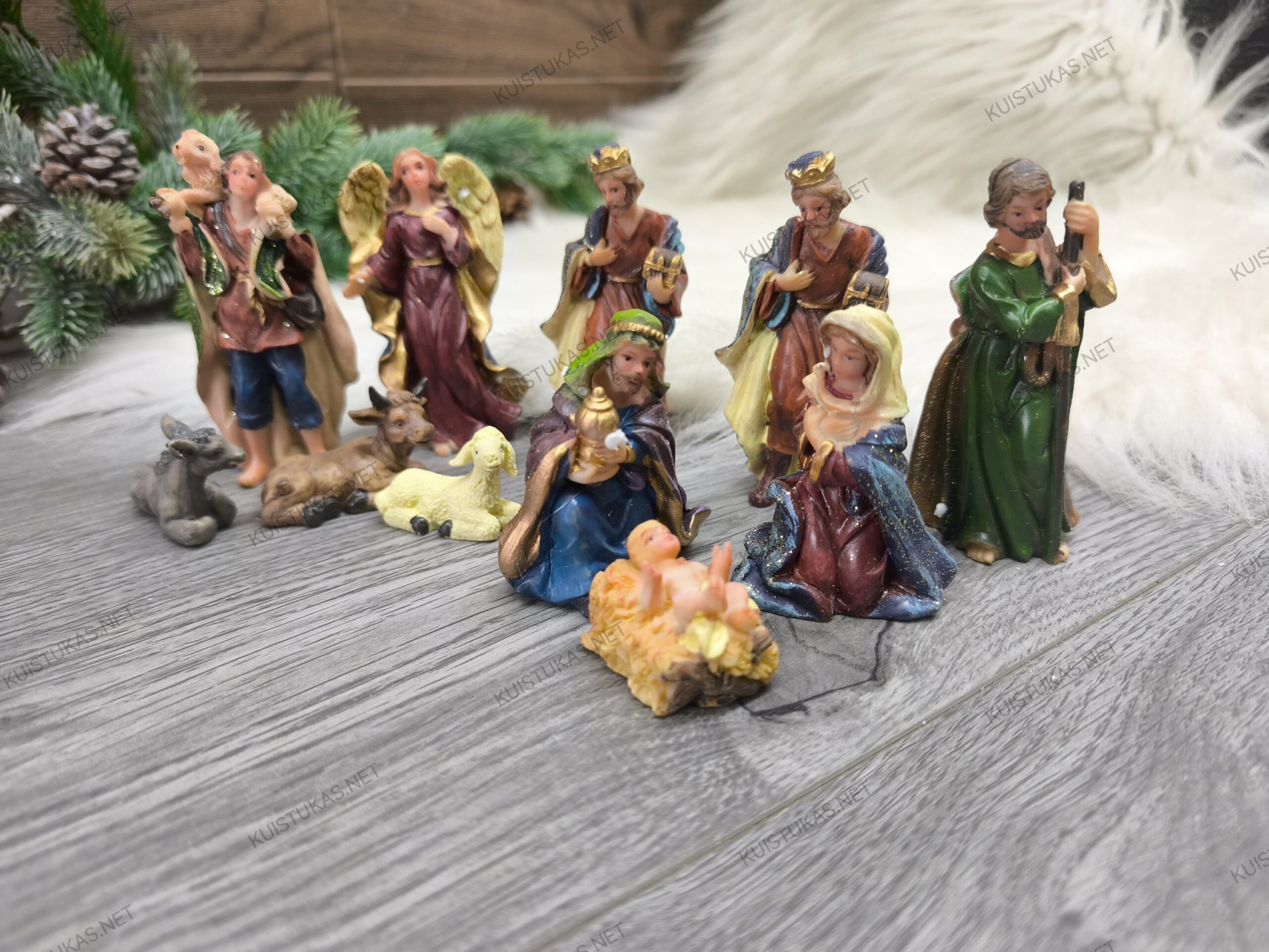 Kiekviena figūrėlė kruopščiai išlieta ir nudažyta rankomis, todėl pasižymi išskirtiniu tikroviškumu bei detalumu.