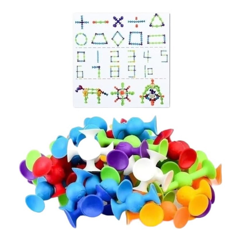 Ryškūs, spalvingi siurbtukai lengvai jungiasi vieni su kitais arba gali būti tvirtinami prie bet kokio lygaus paviršiaus – stiklo, stalo ar plytelių.