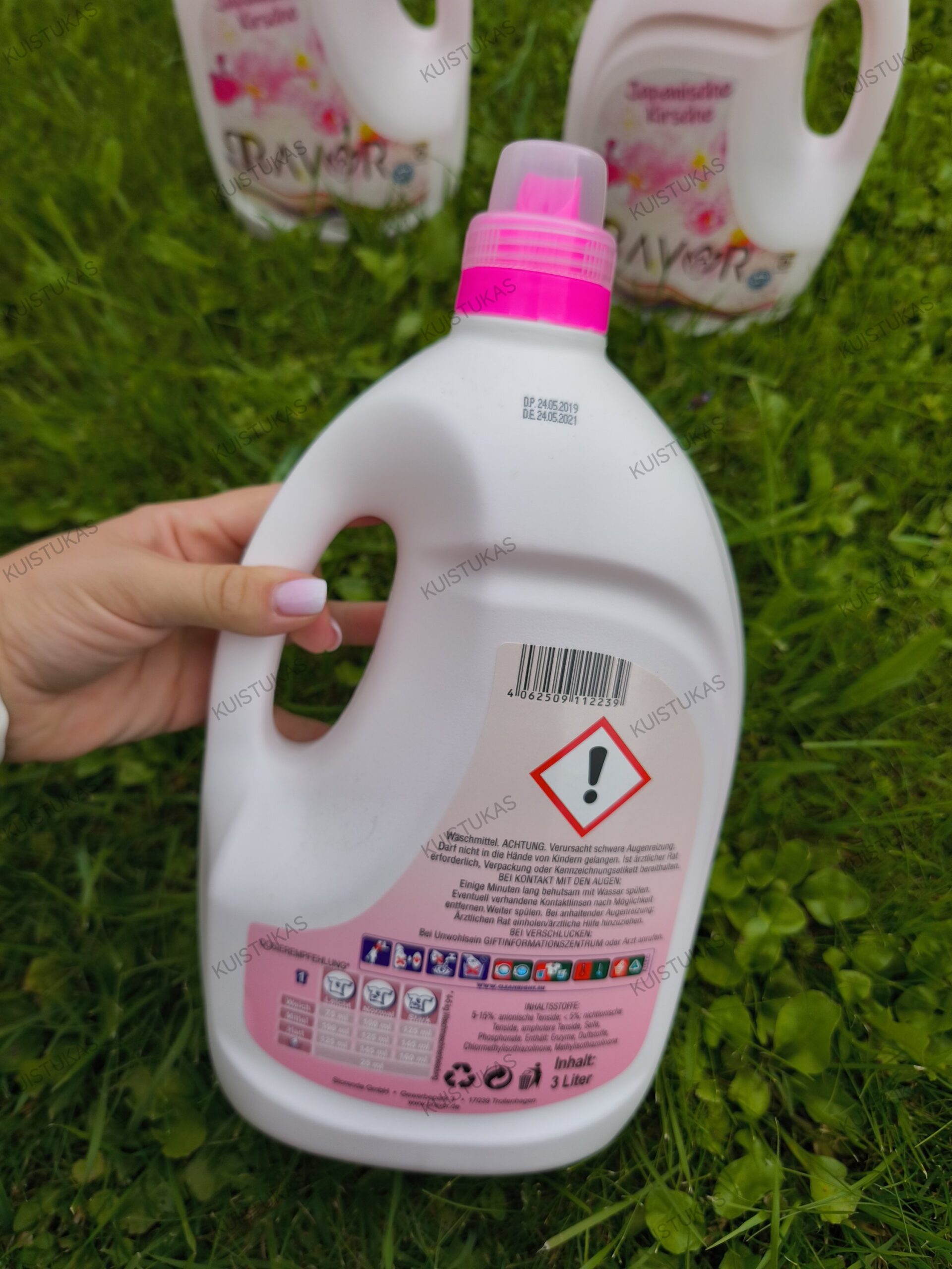 Pakuotėje yra 3 litrai skalbiklio, kurio pakanka maždaug 50 skalbimų.