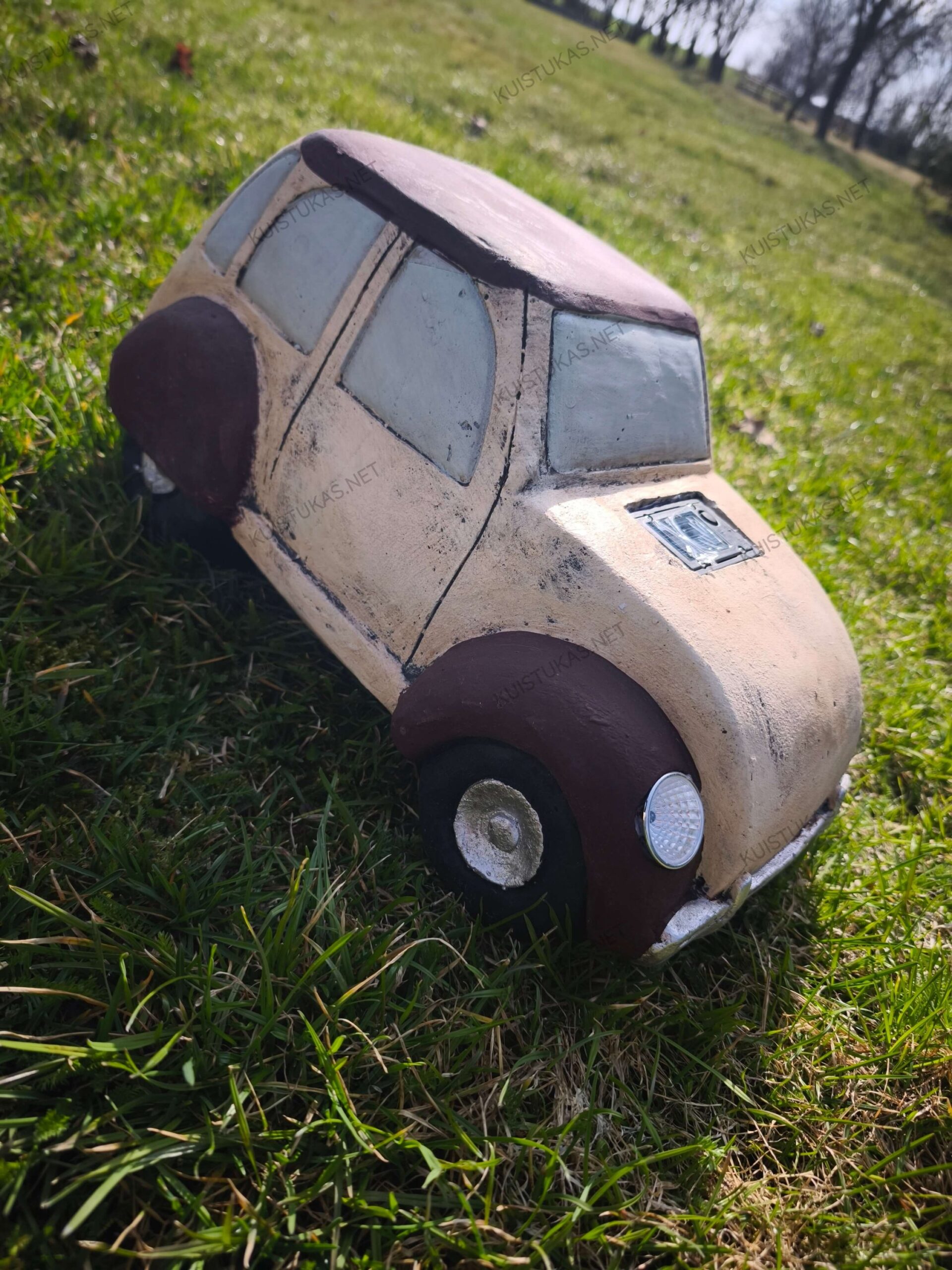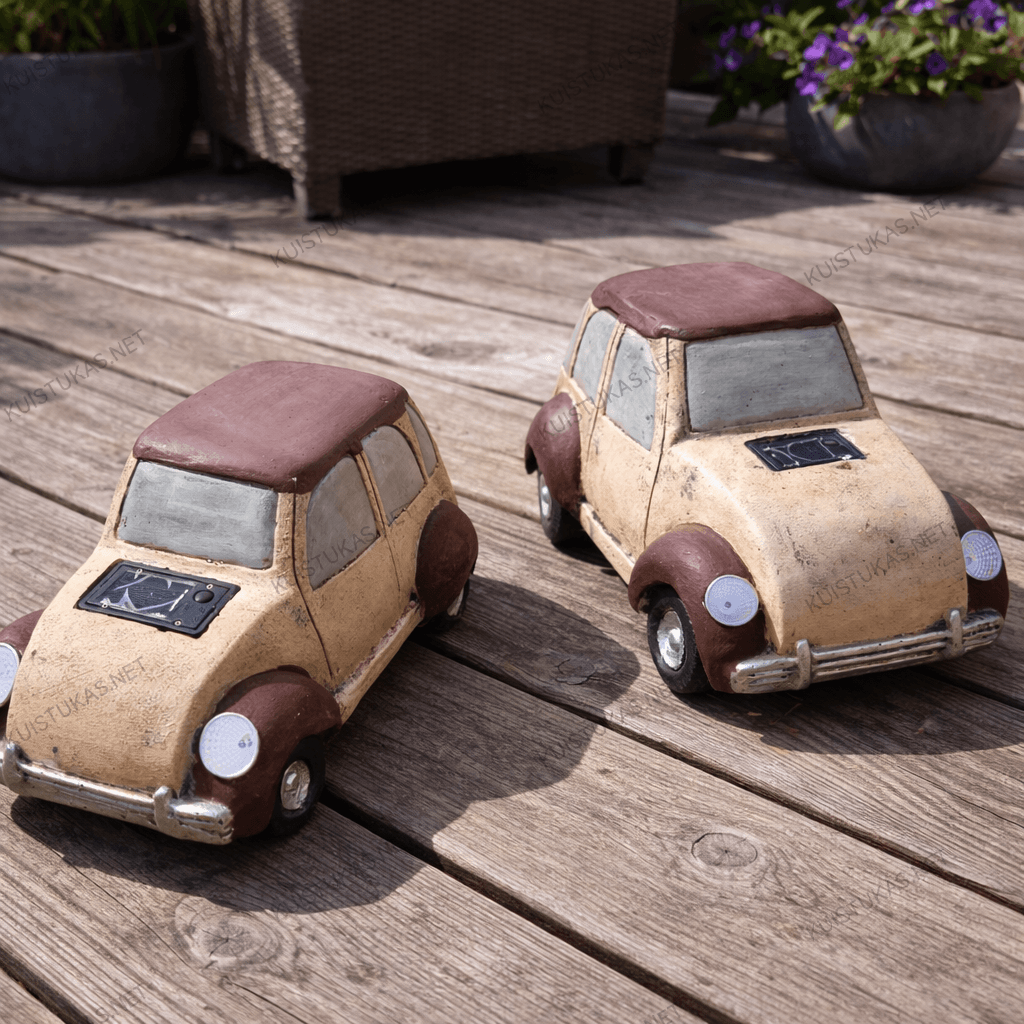 Sodo dekoracija „Retro automobilis“ – tai išskirtinis ir žaismingas akcentas, kuris suteiks jūsų lauko erdvei charakterio, jaukumo ir unikalumo.