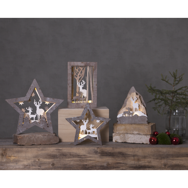 Miško tema su elniais ir medžiais sukuria pasakišką, gamtos įkvėptą vaizdą, primenantį ramų žiemos vakarą.