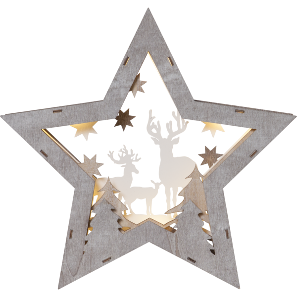 Tai elegantiška ir originali dekoracija, sukurta žvaigždės formoje, kurios viduje atsiskleidžia miško gyvūnai – elnių – siluetai.