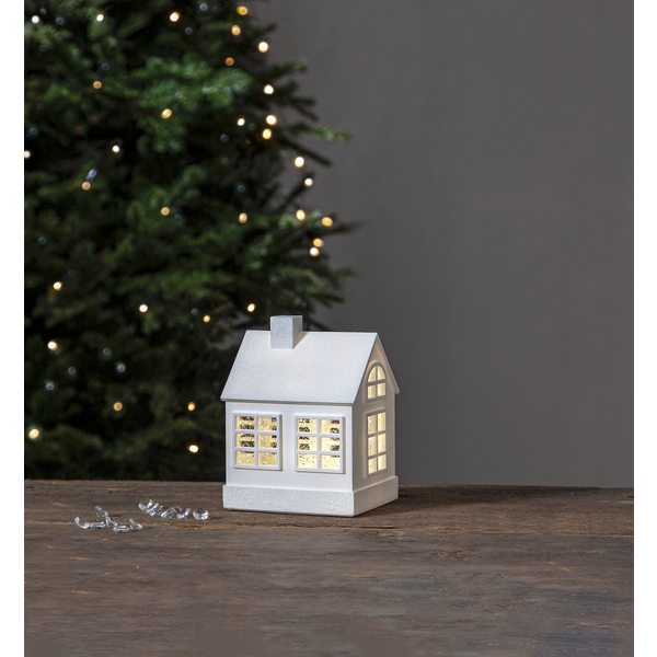 Tai subtilus baltas namelis, kuris skleidžia šiltą baltą šviesą ir primena jaukius Kalėdų vakarus, kai už lango sninga, o namuose tvyro ramybė.
