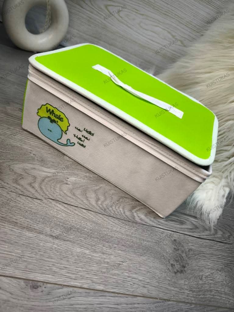 Kompaktiško dydžio (35x20x13 cm) dėžė pagaminta iš tvirto kartono ir kokybiško audinio, todėl yra lengva, bet patvari.