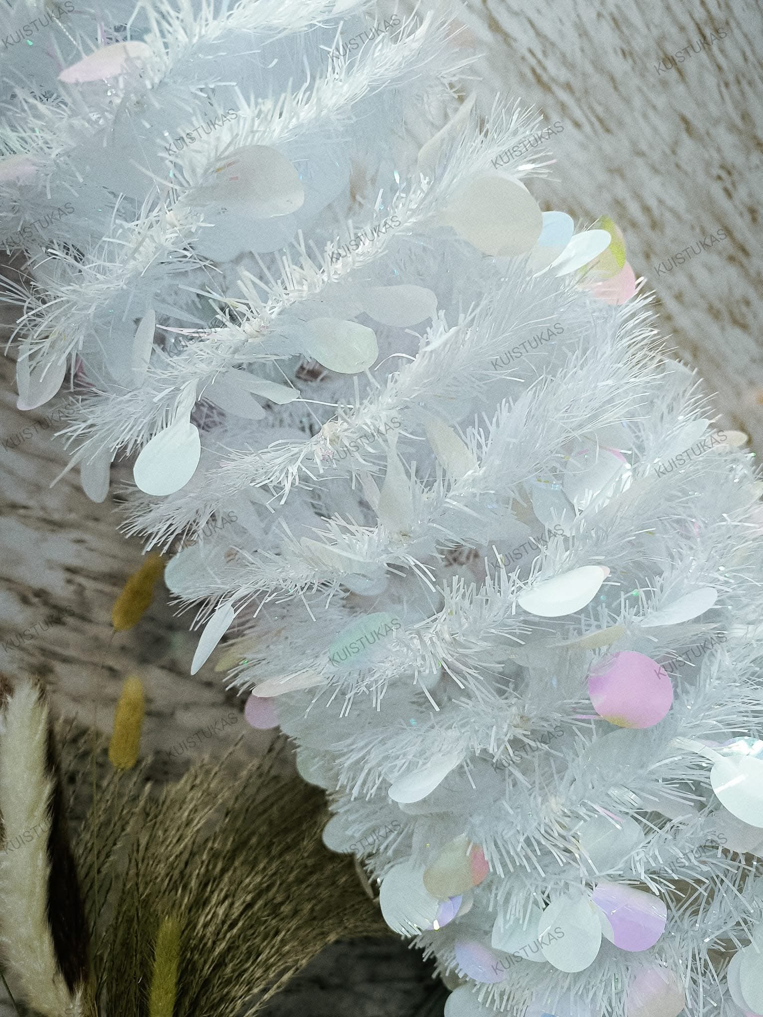 Jos baltos spalvos šakos sukuria sniego efektą, todėl eglutė atrodo šviesi, elegantiška ir puikiai dera prie bet kokio interjero – nuo modernaus iki klasikinio.