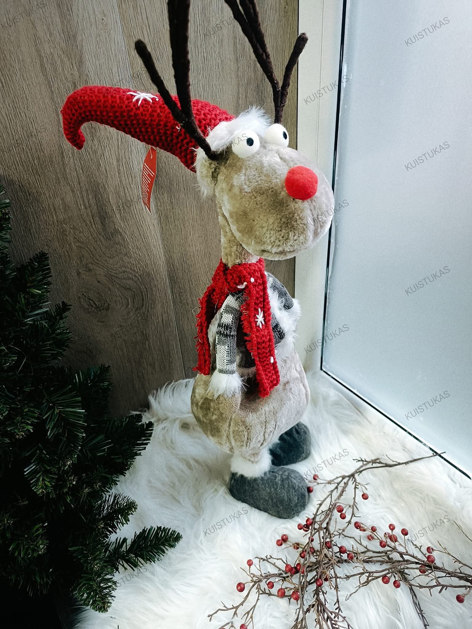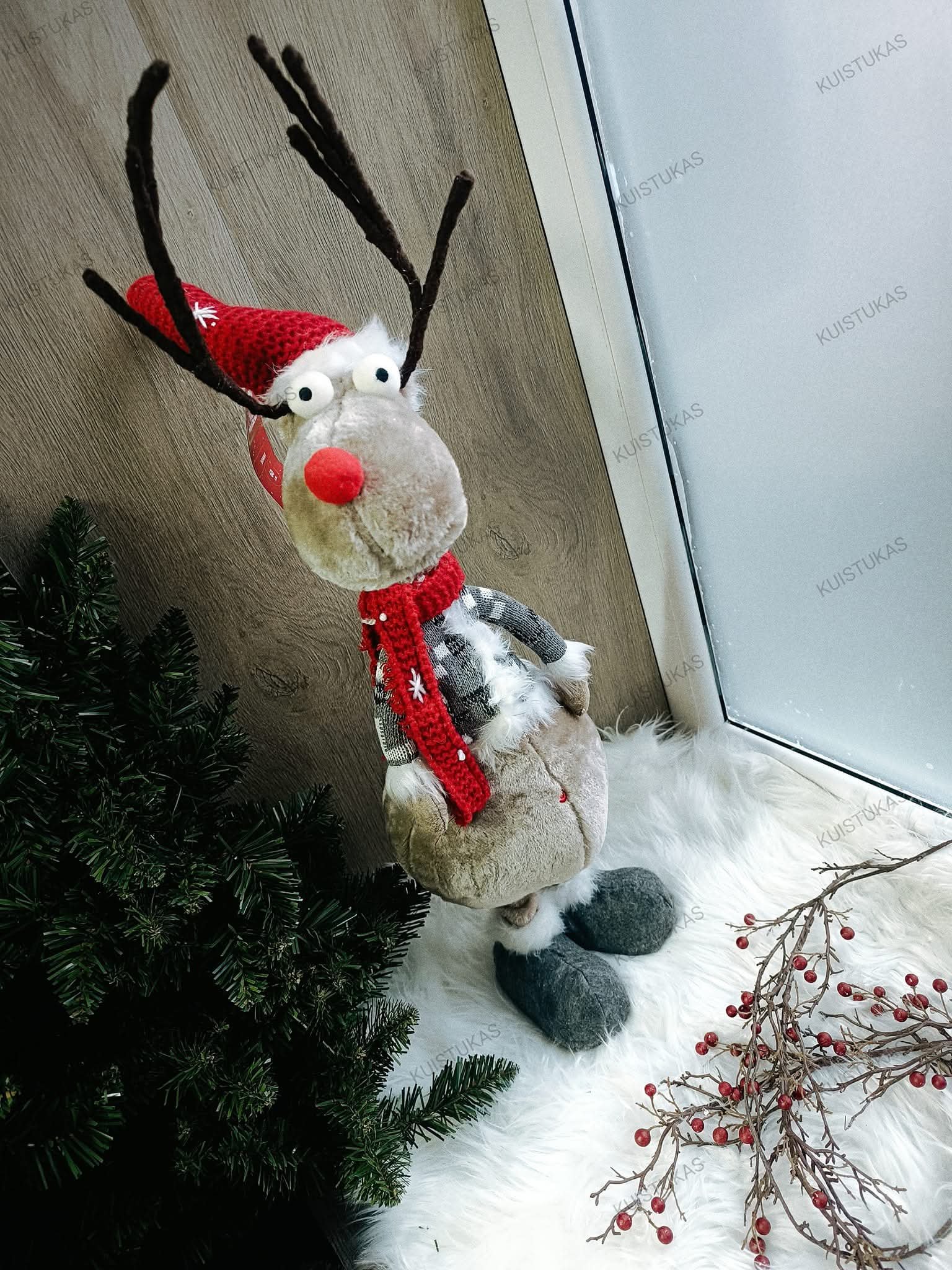 Šis elniukas su ryškia raudona nosimi, jaukia skrybėlaite ir šaliku taps ne tik puošmena, bet ir tikru Kalėdų pasakos herojumi jūsų interjere.