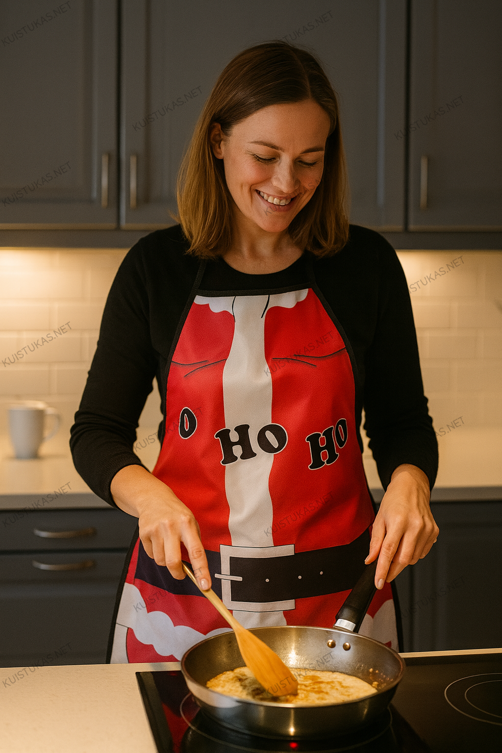 Į virtuvę įsileisti Kalėdų dvasią su šventine prijuoste „Ho Ho Ho“ – žaisminga, ryškia ir kupina šventinės nuotaikos!