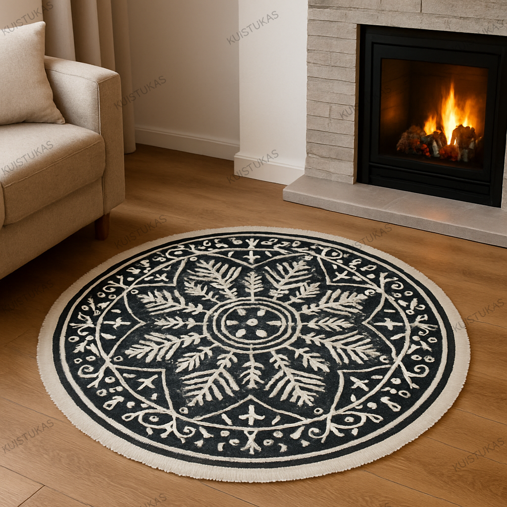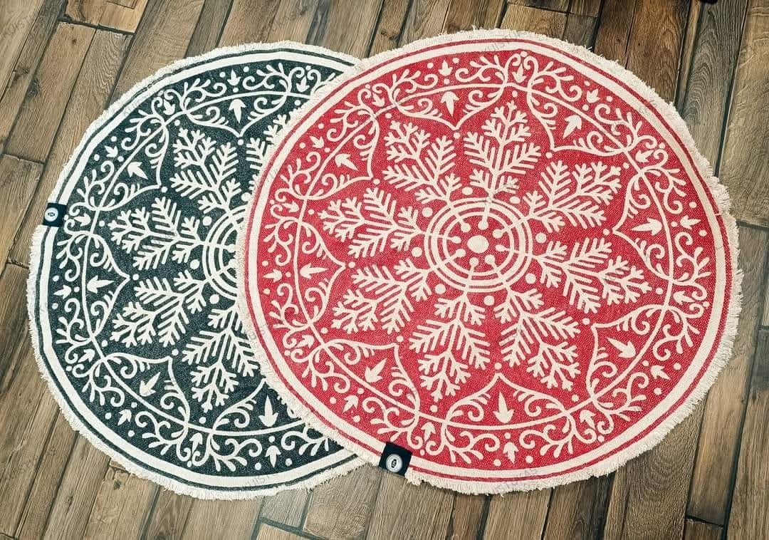 Matmenys – ø90 cm , todėl kilimas yra pakankamai kompaktiškas, kad tilptų net ir mažesnėse erdvėse, bet kartu pakankamai didelis, kad taptų svarbia šventinio dekoro dalimis.