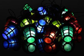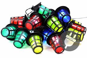 Girliandą sudaro 20 LED šaltinių, įmontuotų į žibintus (ø6x8cm), kurie skleidžia ryškias ir įvairias spalvas.