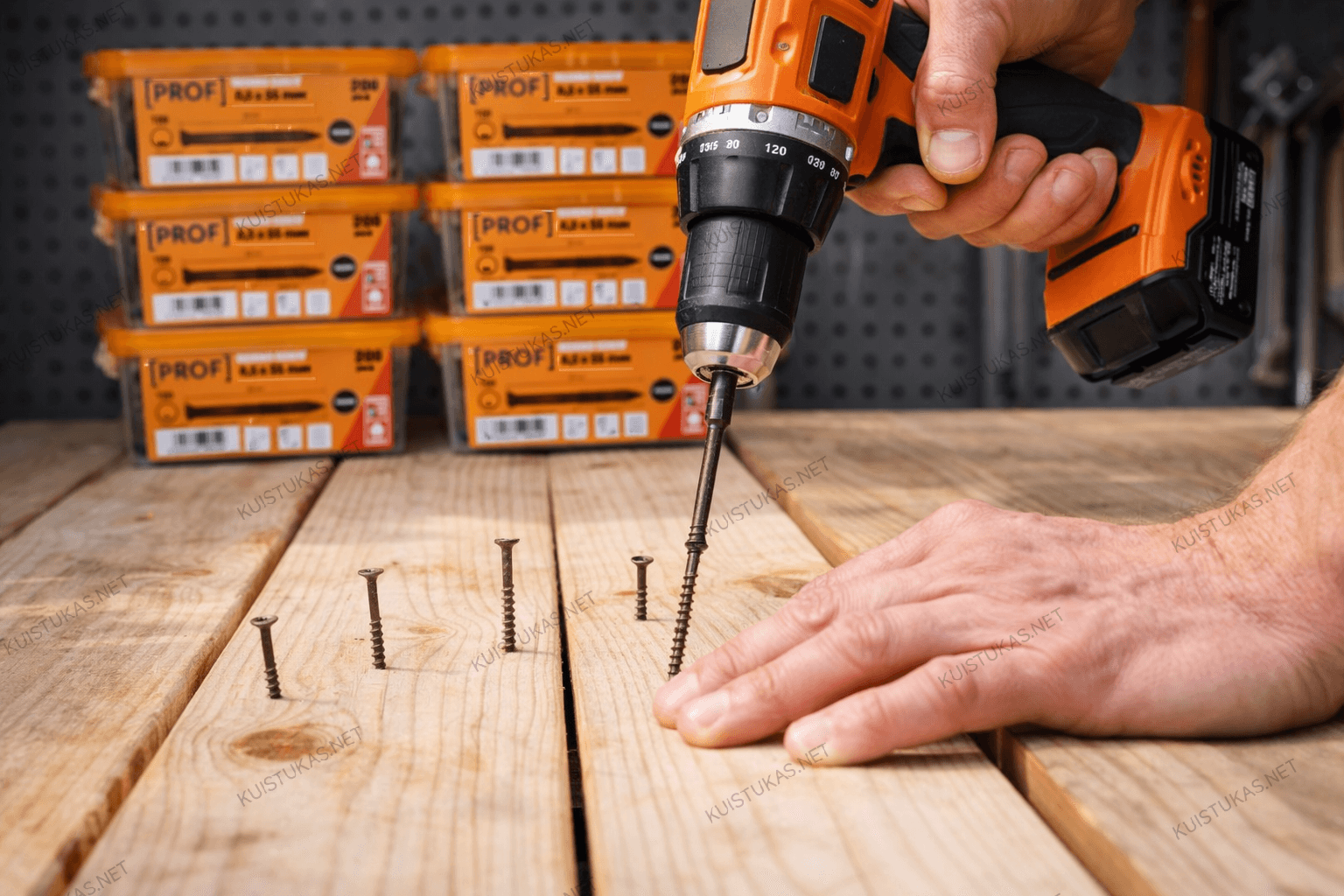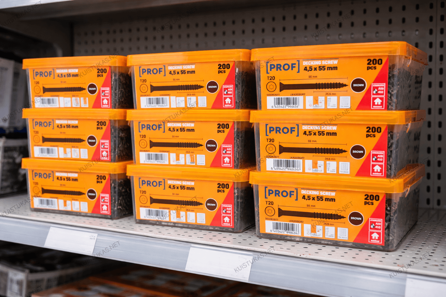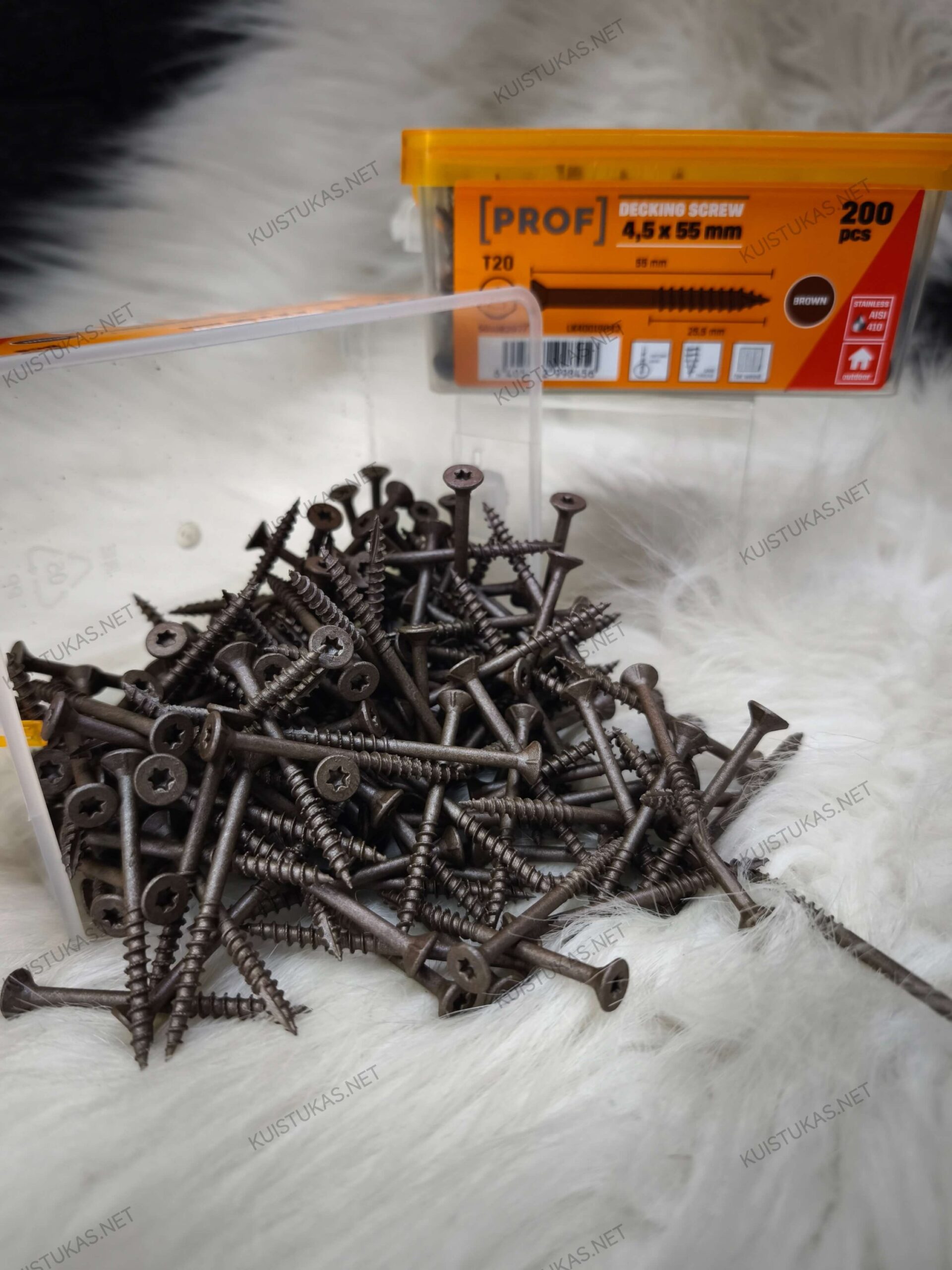 Terasiniai medsraigčiai „Prof“ 4,5×55 mm – patikimas sprendimas medinių terasų, lauko konstrukcijų ir kitų išorės projektų montavimui.