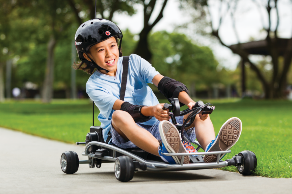 Vaikiškas apsauginis šalmas „Razor Black“ – patikima ir tvirta apsauga vaikams bei paaugliams, mėgstantiems stilingai leisti laiką lauke.