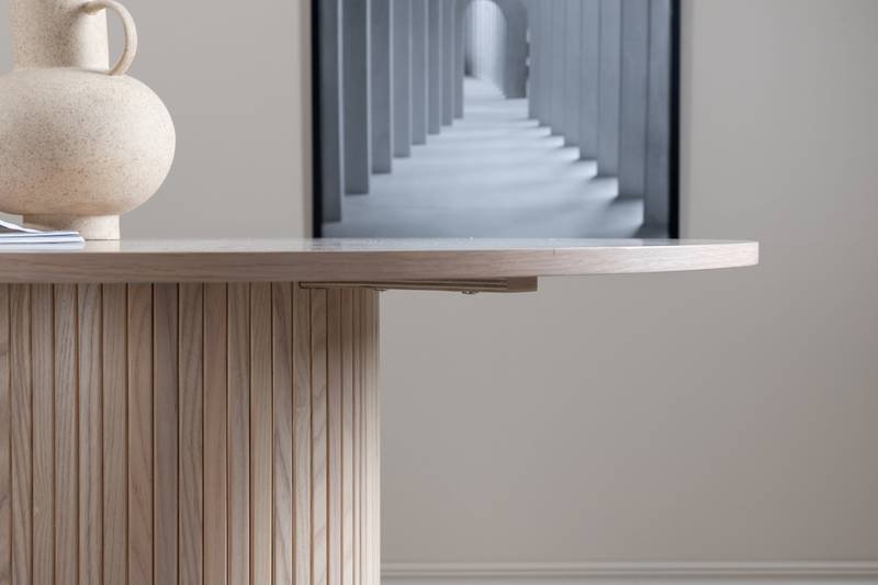 Šviesaus atspalvio dizainas ir subtilios linijos leidžia šiam stalui lengvai įsilieti į įvairaus stiliaus erdves – nuo skandinaviško minimalizmo iki modernaus ar klasikinio interjero.