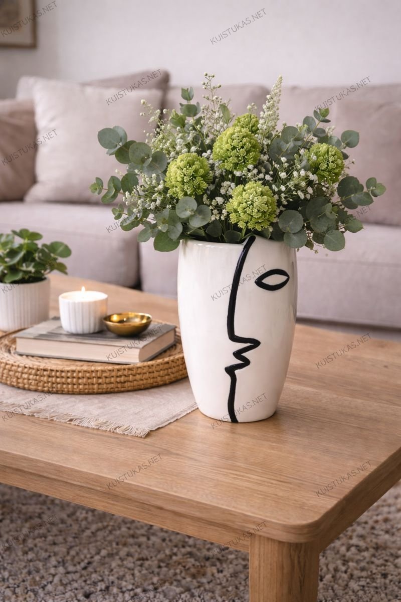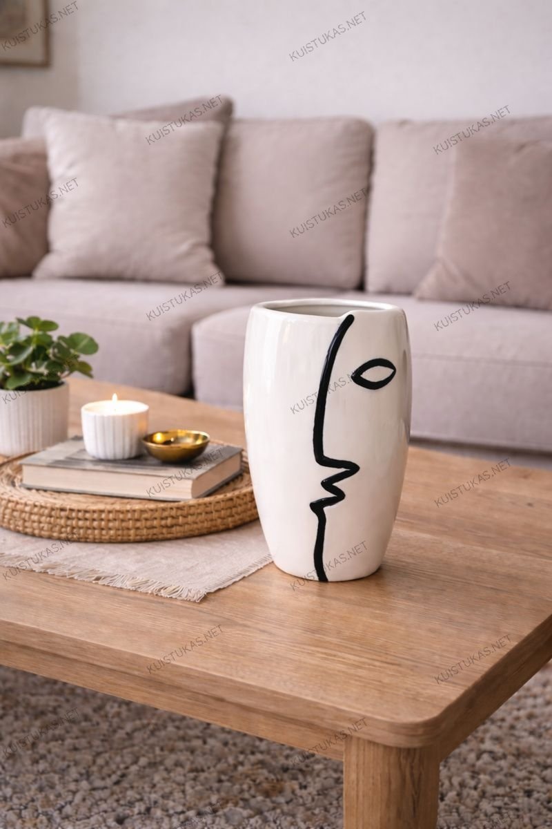 Vaza „Linea Face“ – tai moderni ir išraiškinga interjero detalė, sukurta tiems, kurie vertina meną, dizainą ir drąsius akcentus namų erdvėje.