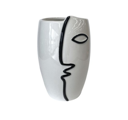 Ši vaza išsiskiria veido formos siluetu, kurio minimalistinės linijos subtiliai pabrėžia žmogaus profilio kontūrus.