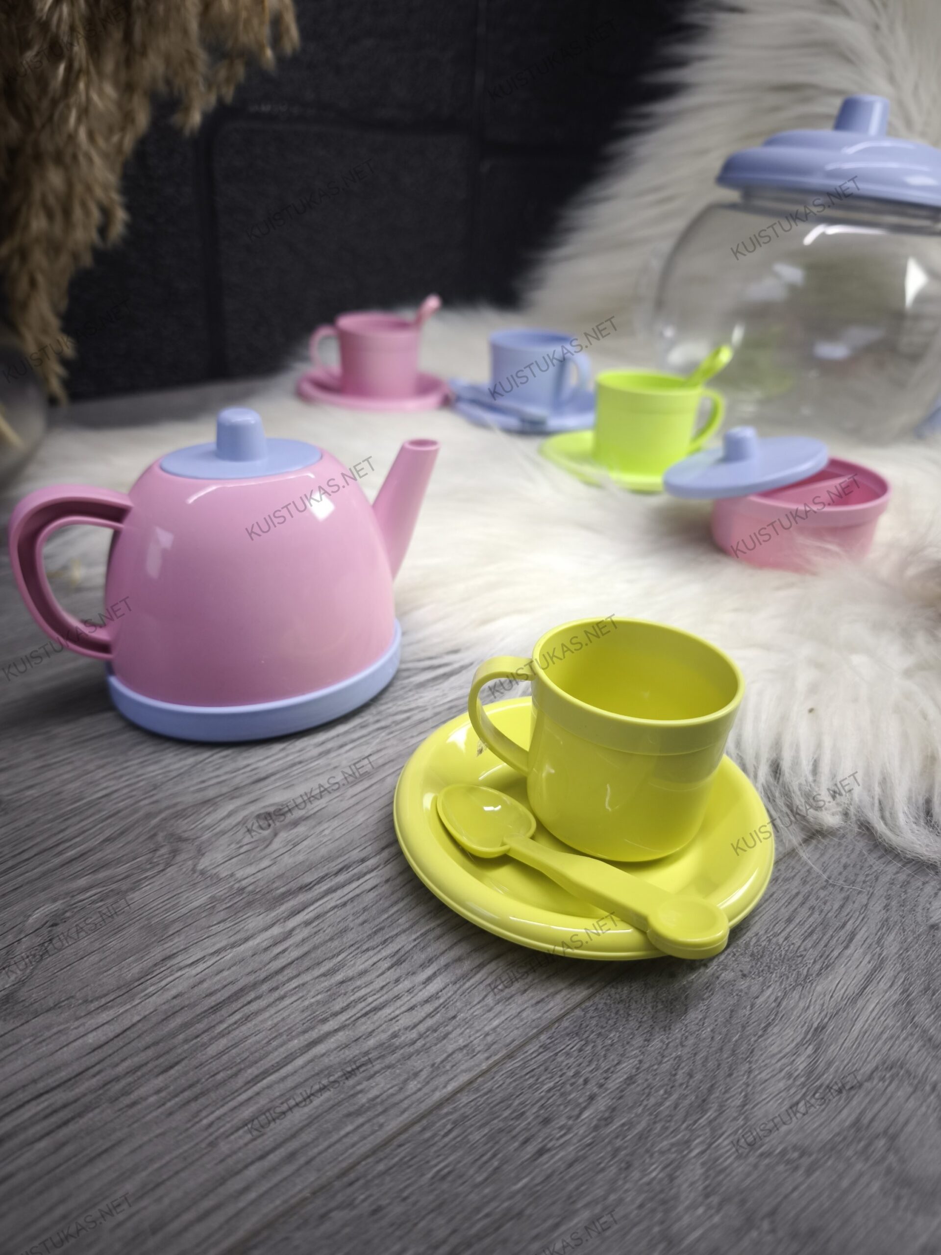 Žaislinis indų rinkinys – tai žaismingas ir spalvingas rinkinys, skirtas mažiesiems arbatos vakarėlių ir vaidmenų žaidimų mėgėjams.
