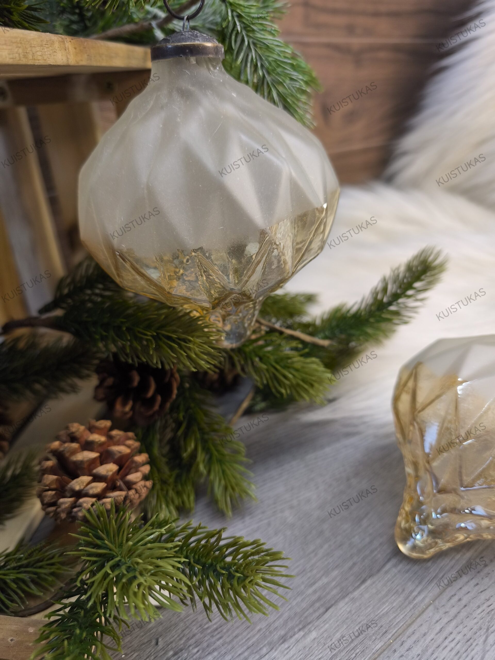 Stiklinis žaisliukas „Amber Diamond“ – tai elegantiška ir išskirtinė Kalėdų eglutės puošmena, suteiksianti jūsų šventiniam interjerui prabangos ir jaukumo pojūtį.