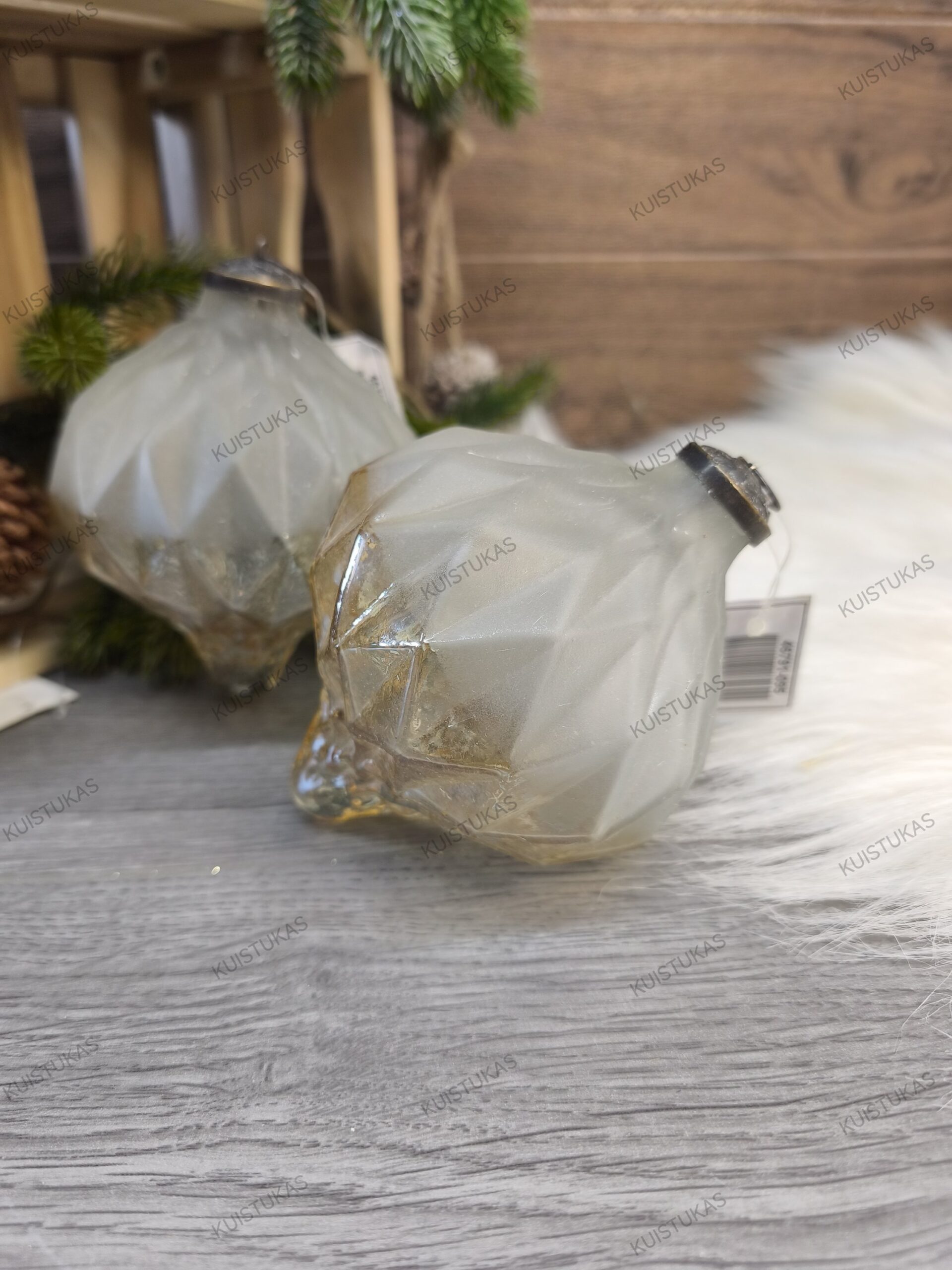 Jo unikalus deimanto formos dizainas bei subtili gintaro atspalvio spalva sukuria rafinuotą ir šiltą įspūdį, lengvai derantį prie įvairių šventinių dekoracijų.