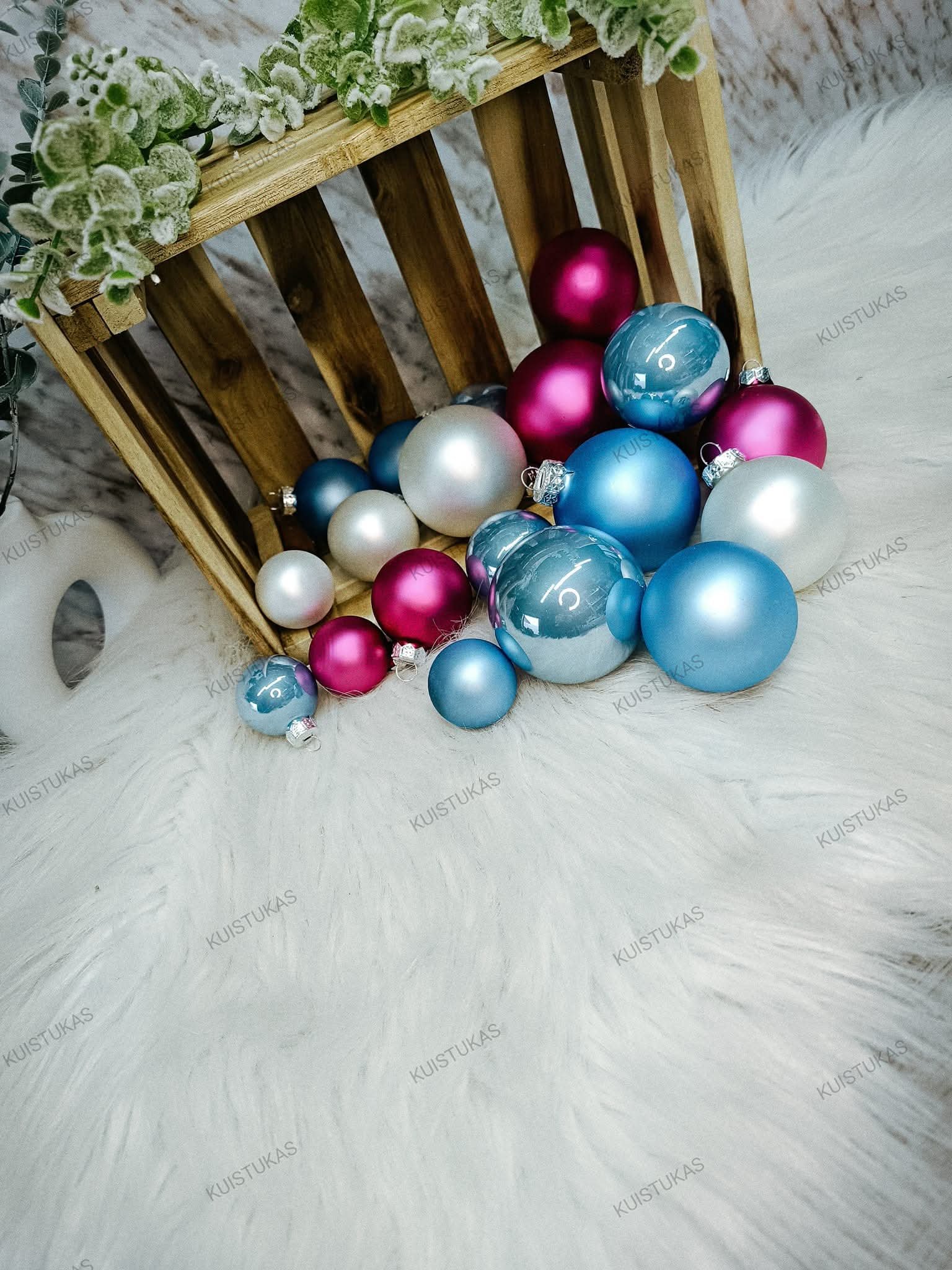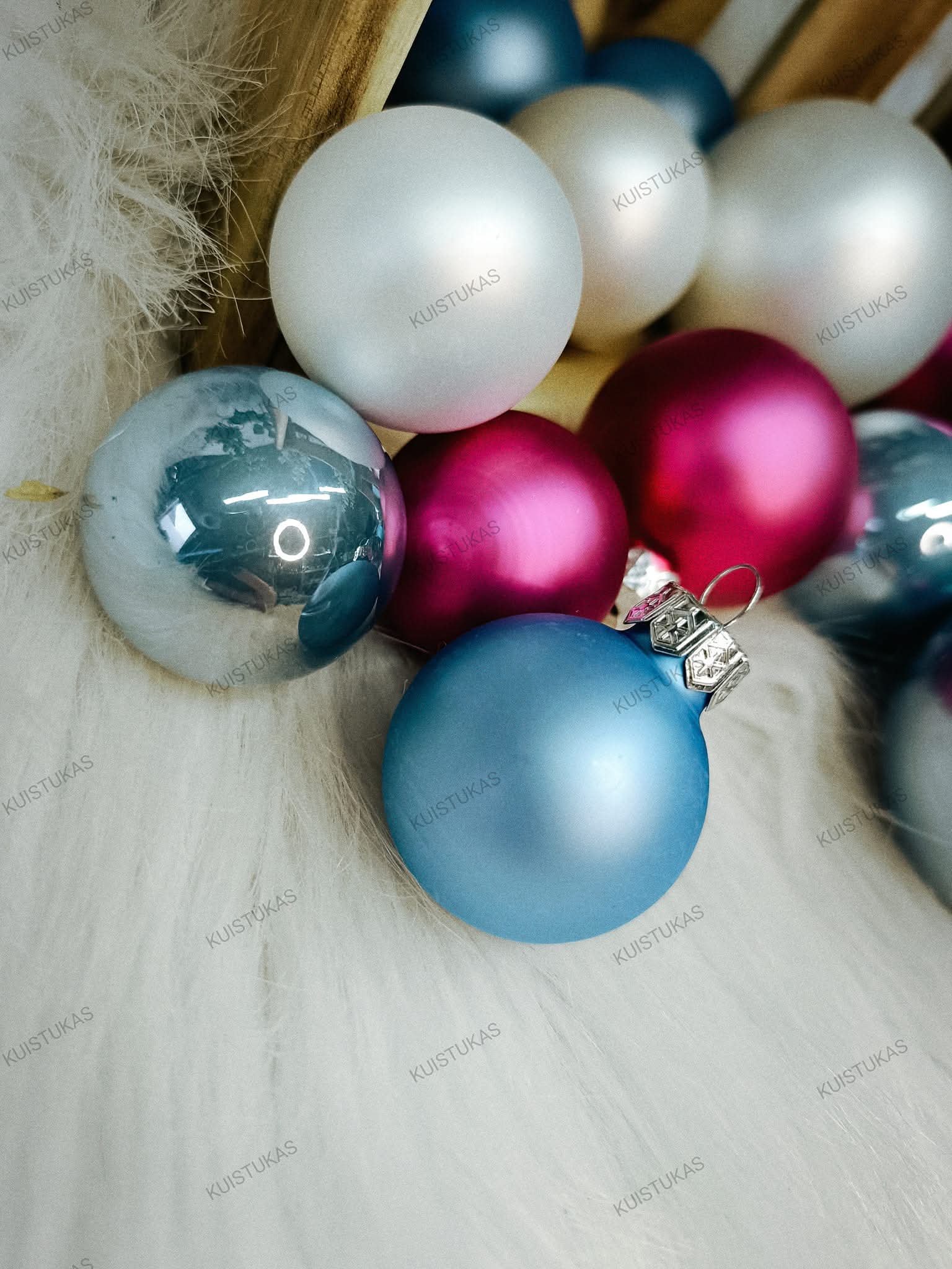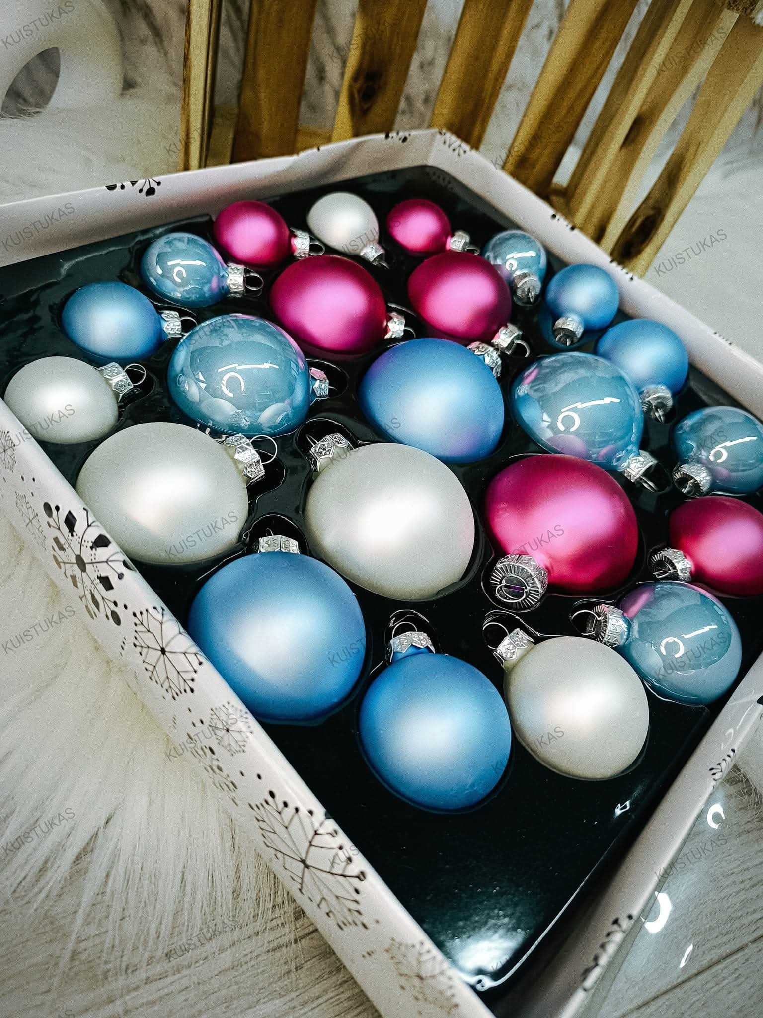 Komplektą sudaro mėlyni, rožiniai bei sidabriniai burbulai, kurie suteiks jūsų eglutei modernumo, šventinio žavesio ir išskirtinio stiliaus.