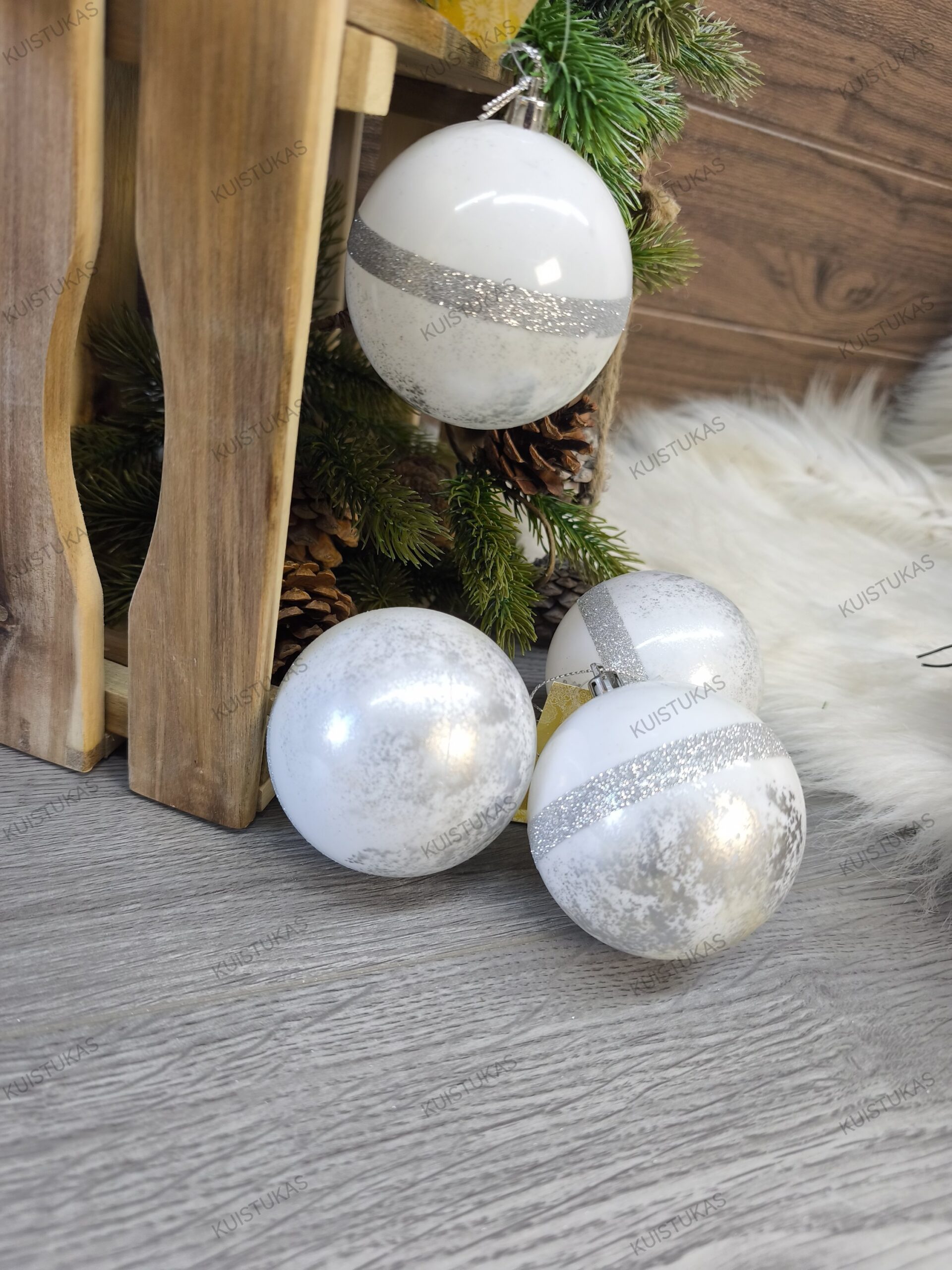 Žaisliukai „Frost Elegance“ puikiai dera ne tik ant eglutės, bet ir įvairiuose šventiniuose vainikuose, stalo kompozicijose ar dekoratyviniuose induose .
