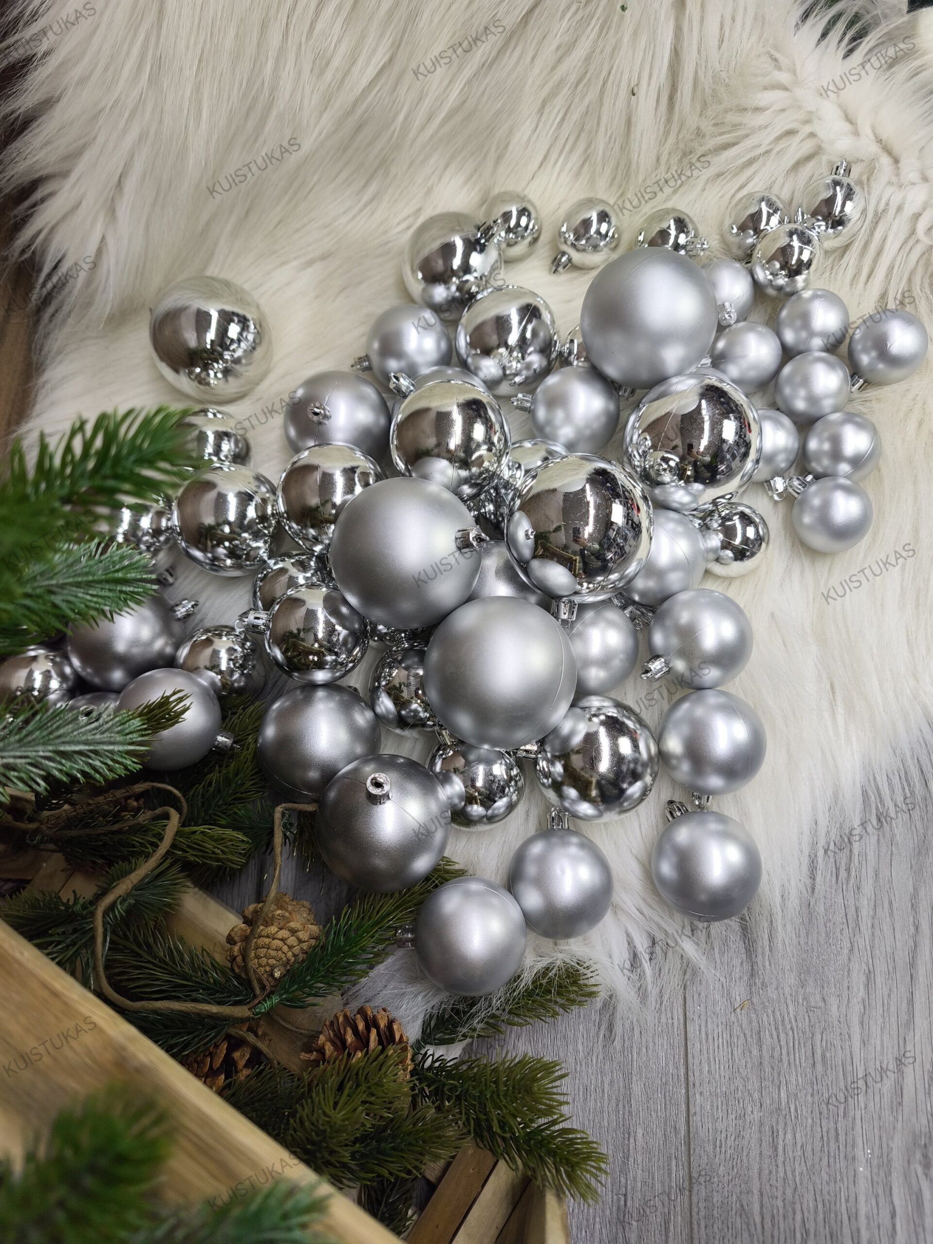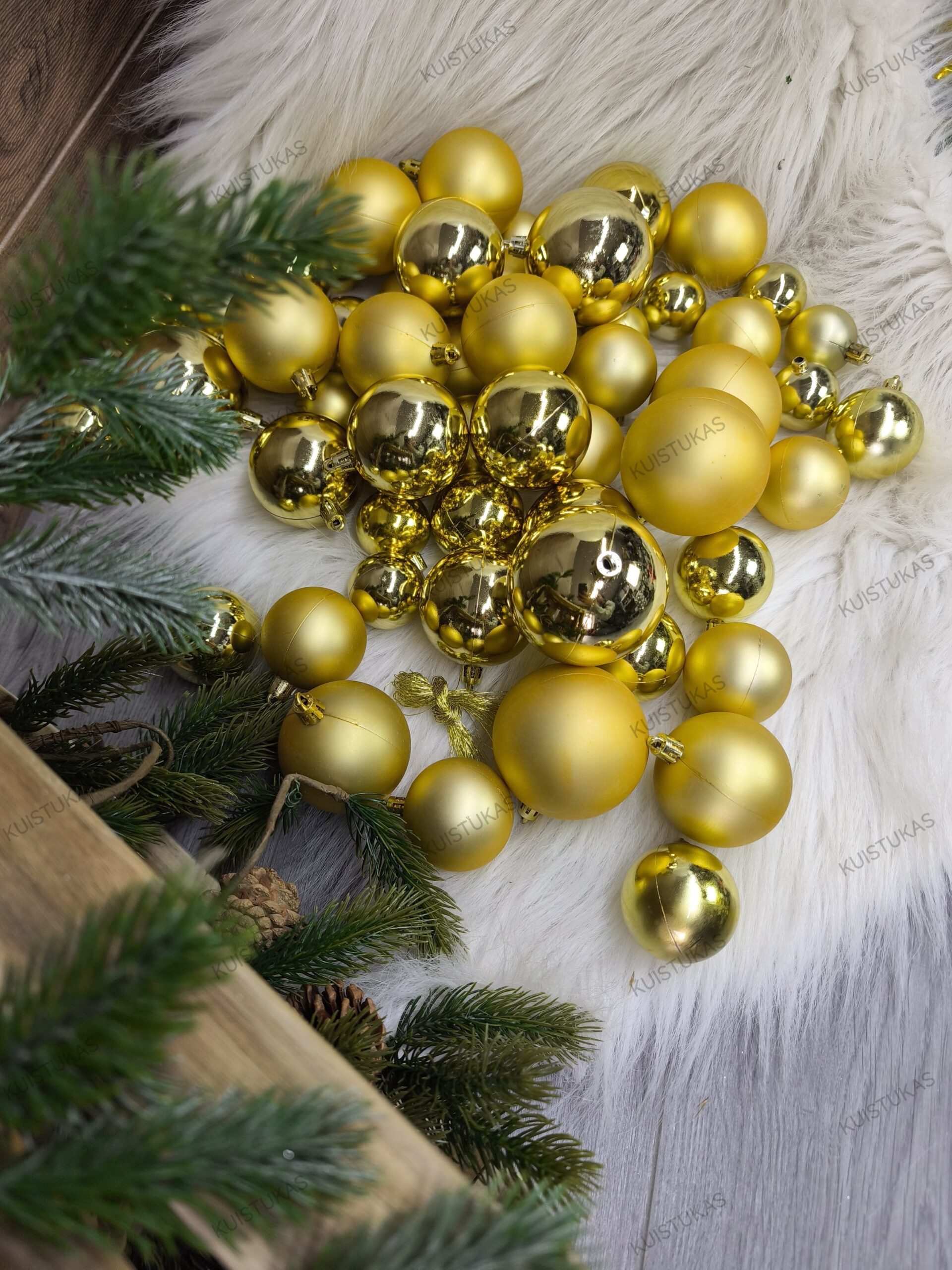 Kiekvienas žaisliukas pasižymi nepriekaištinga forma ir blizgesiu, kuris gražiai atspindi šviesą ir suteikia eglutei išskirtinę šventinę nuotaiką.