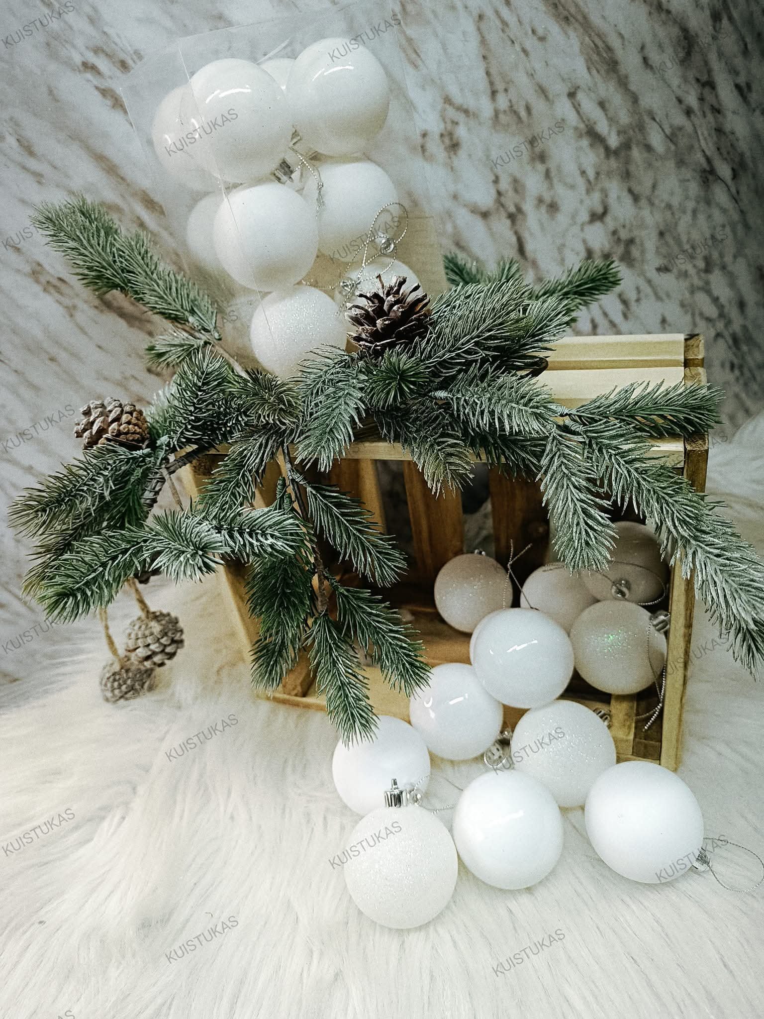 Kalėdiniai eglutės žaisliukai „White Snow Elegance“ – tai šviesi, švari ir itin elegantiška dekoracija, suteikianti eglutei subtilios ramybės ir jaukumo.