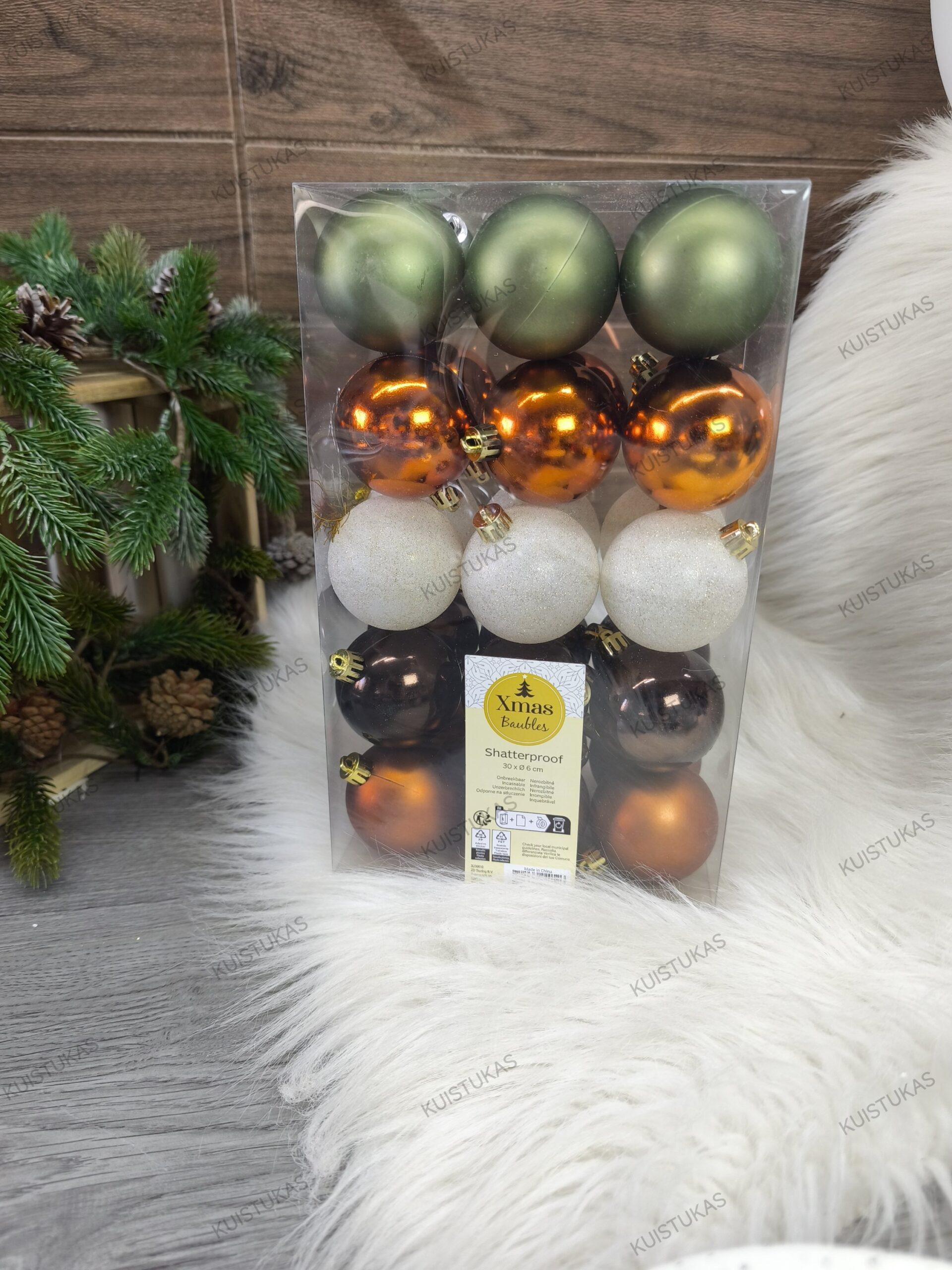 Kalėdiniai žaisliukai „Forest Glow“ – tai elegantiškas 30 vnt. komplektas, kuris jusu eglutei suteiks šventinės prabangos ir jaukumo.