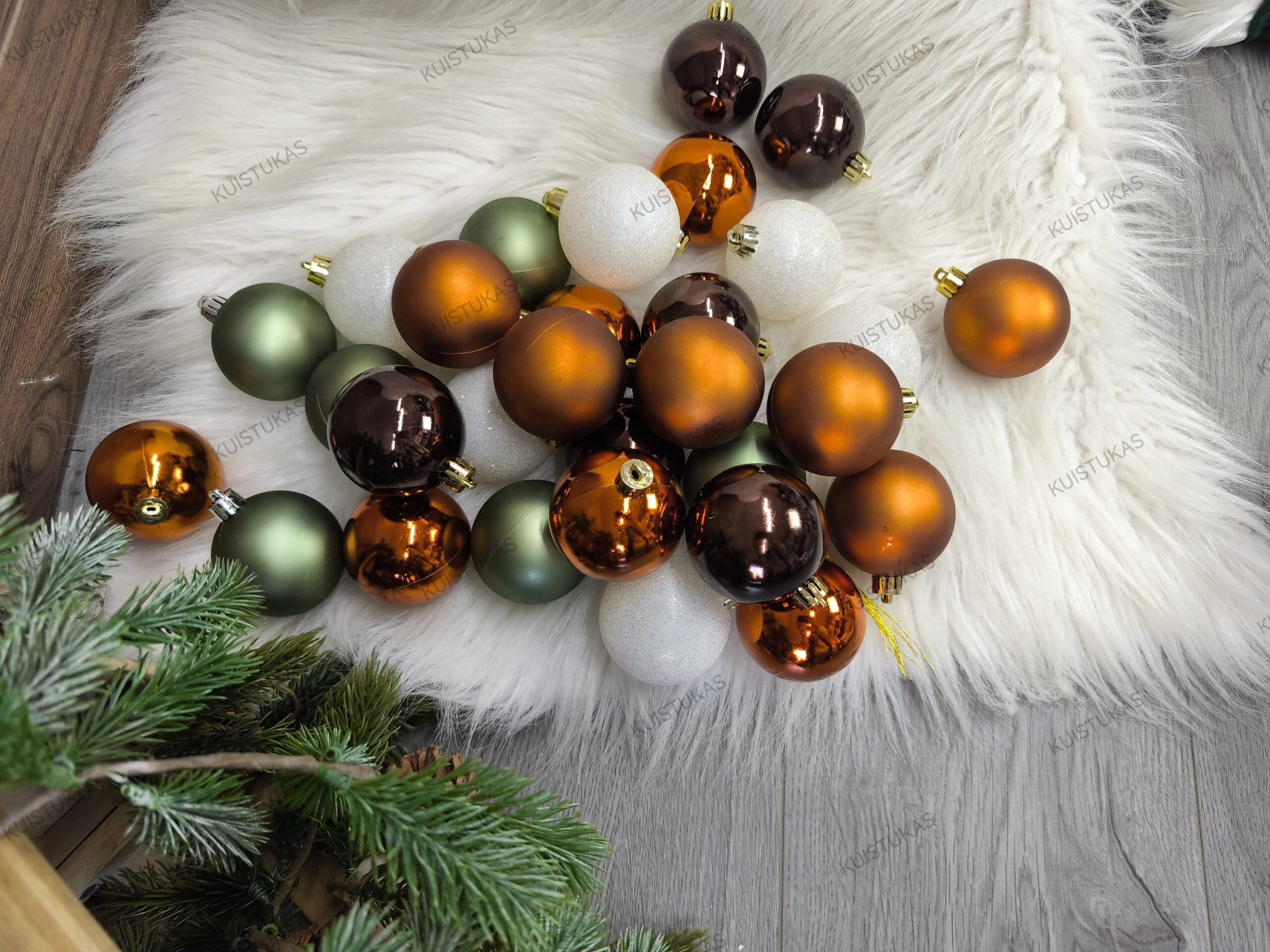 Kiekvienas burbulo skersmuo – ø5 cm , tad jie yra universalaus dydžio ir lengvai pritaikomi tiek mažesnis eglutėms, tiek didesniems kalėdiniams medžiams.