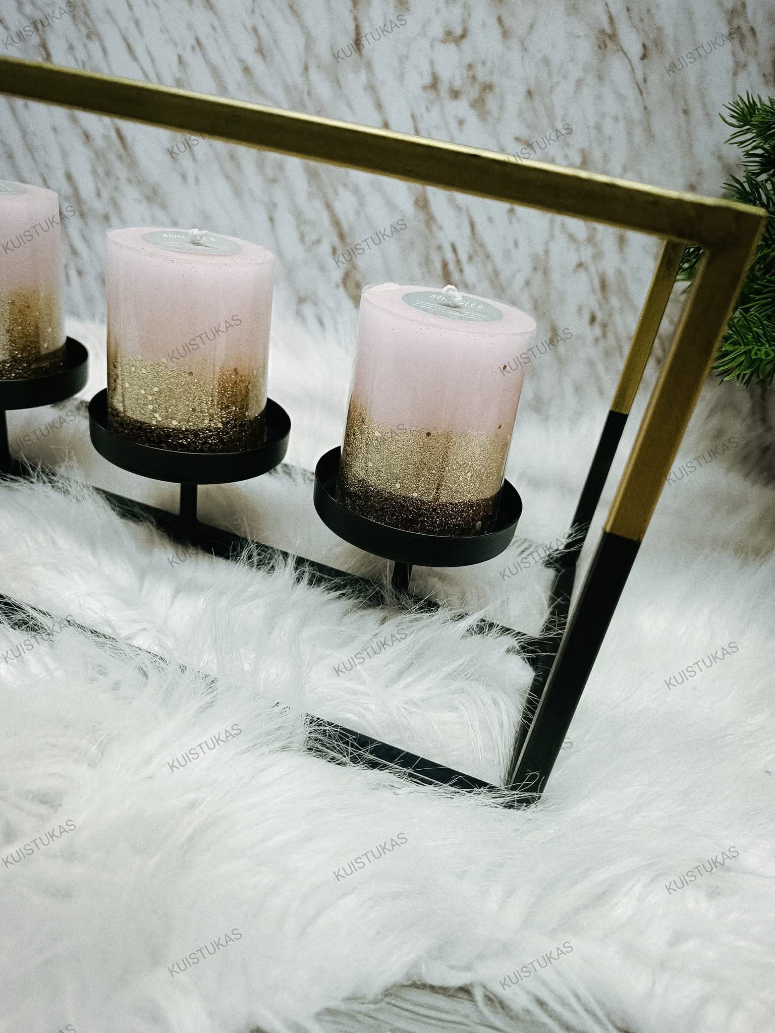 Telpa keturios žvakės, kurios gražiai apšviečia aplinką ir sukuria šventinę nuotaiką;