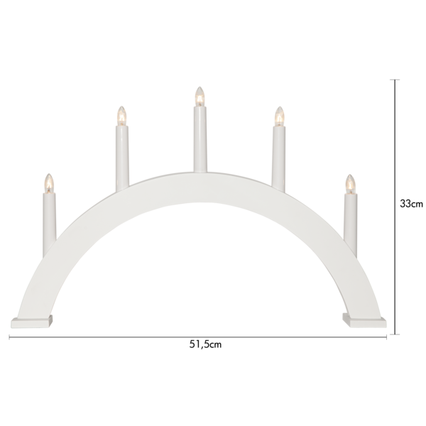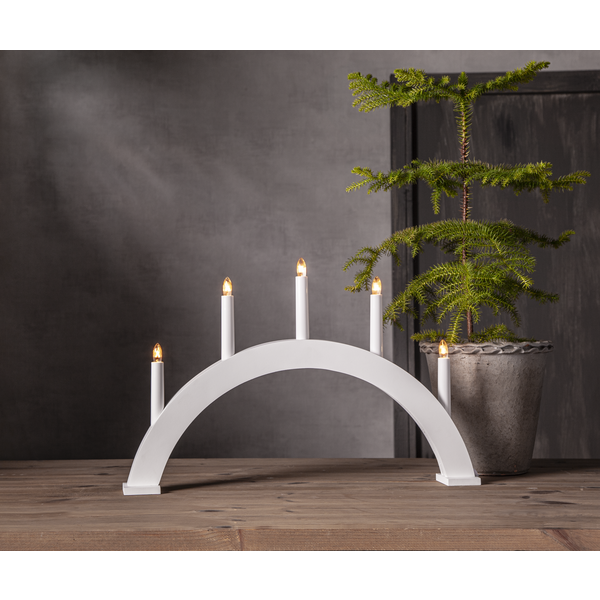 Penkios LED žvakės tolygiai išdėstytos per visą arkos ilgį ir skleidžia šiltai baltą šviesą, kuri sukuria ramią, jaukią ir kviečiančią atmosferą.