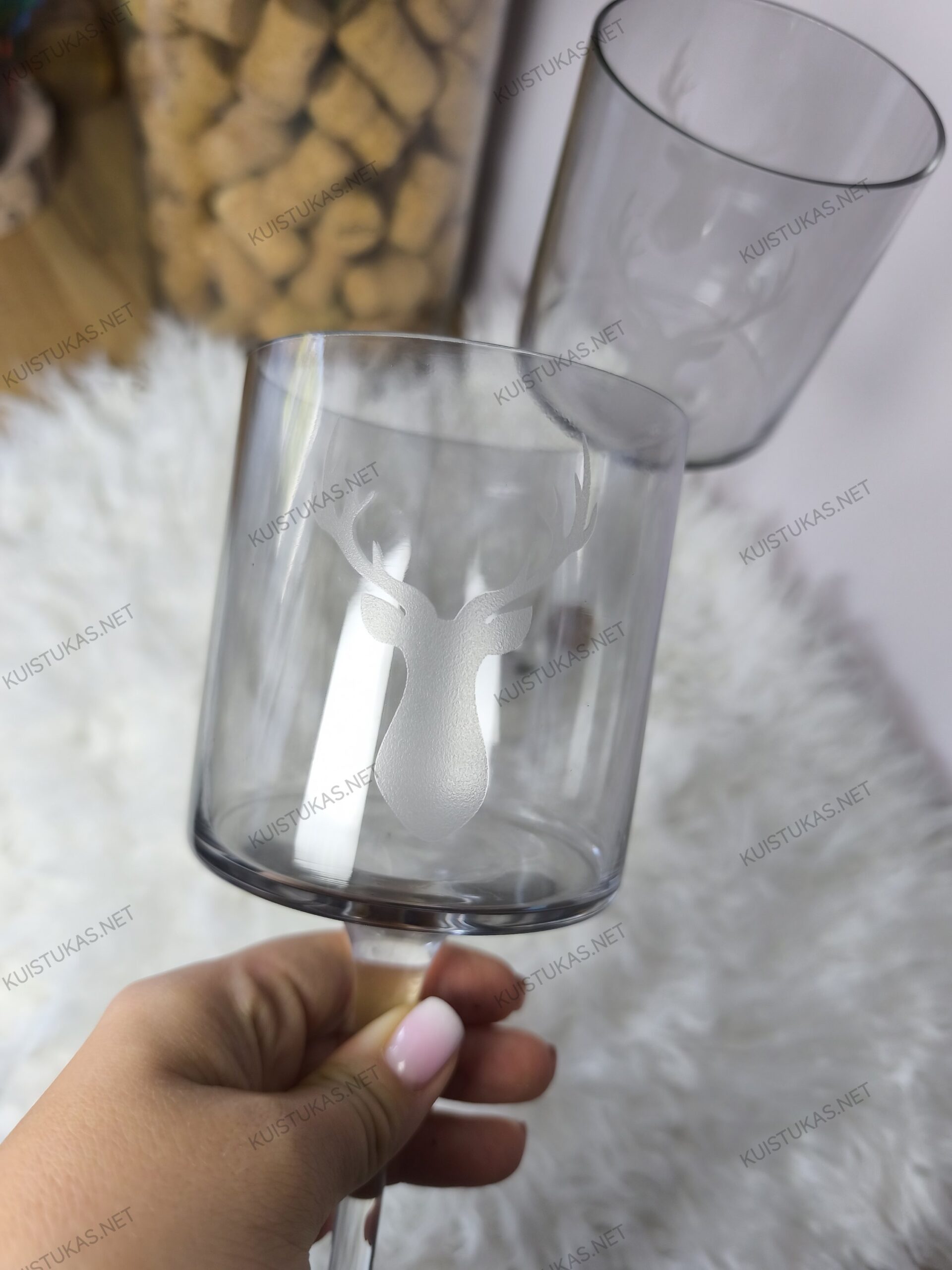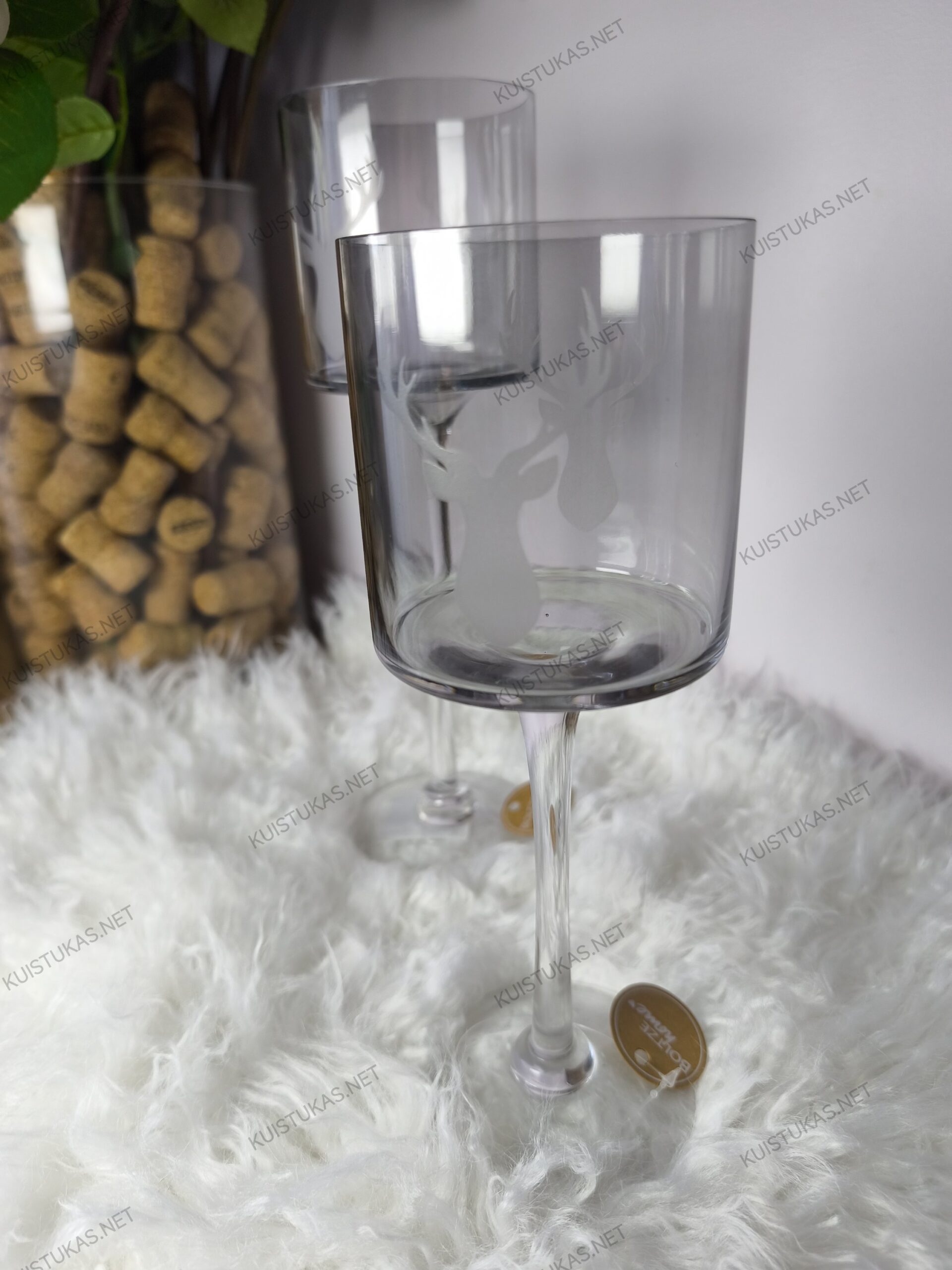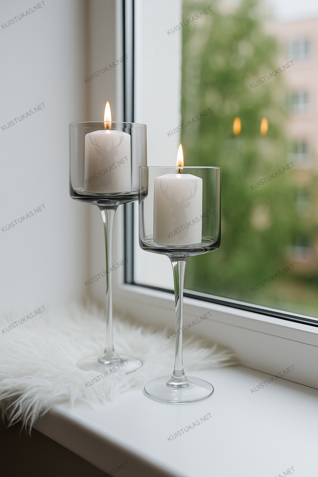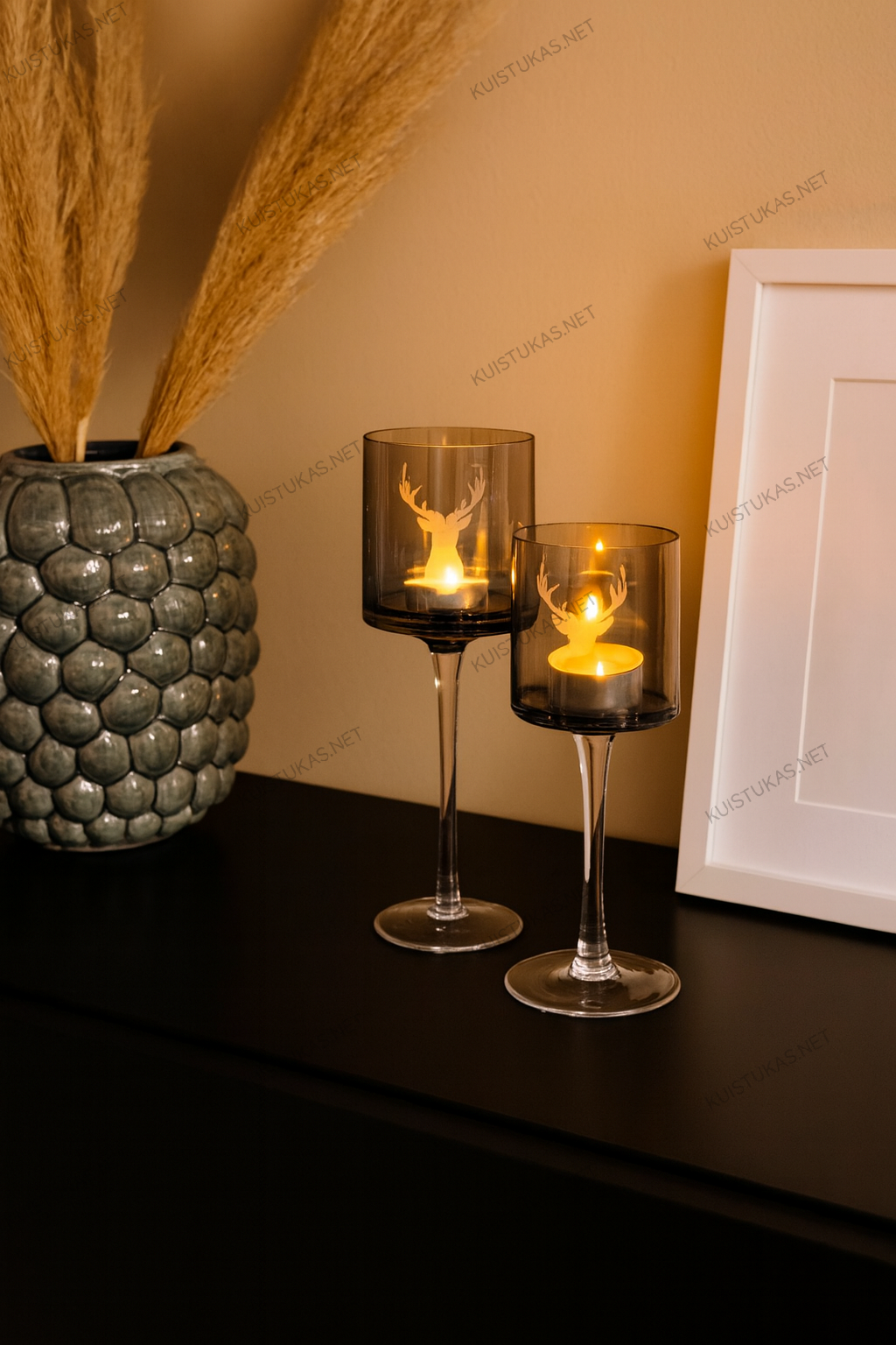 Stikliniai elnių motyvai suteikia švelnų dekoratyvinį akcentą – jie išryškėja degant žvakei ir sukuria šiltą, jaukią atmosferą.